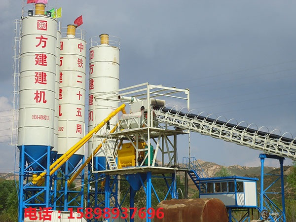 濰坊方建機械HZL60型混凝土攪拌樓產品結構特點: 一、采用同樣主機JS1000,最大生產率可達60m3/h,比一般的提高20%,即自動循環時1分鐘一個循環(也可以說同樣生產率裝機功率數下降,能耗降低),其主要原因是增設了一個砂石計量斗。軸端密封采用分體式,即軸端密封 與軸端潤滑是分開的。 二、砂石計量斗與主機架布置在一起有3個特點。 1料斗底部氣缸開門卸料快,約8秒左右。 2后臺可用料臺式裝載機上料或懸臂拉鏟。 3采用料斗式裝載機上料,后臺布置緊湊,三個骨料倉一字形排列,使裝載機上料方便,占地少,總體布置美觀。 三、所有物料采用稱重法計量,保證計量精度穩定可靠(有的用水流量 計),稱量選用高精度傳感器與電子秤,計量精度高達±1%。 四、可以同時采用四種骨料,一種水,三種水泥(含粉煤灰等摻和料),二種粉狀和二種液態外加劑(由用戶選擇)。 五、設有粉狀和液態外加劑儲存、輸送、自動計量系統。 六、電氣元件、氣路管件等關鍵件選用進口件,如限位開關等。 七、控制室隔離,螺旋機振動隔離,減少計量時振動影響及延長控制系統壽命等。 八、在砂石上料形式上,我公司設計有鋼絲繩提升料斗式和大傾角50°皮帶輸送機兩種供用戶選擇。